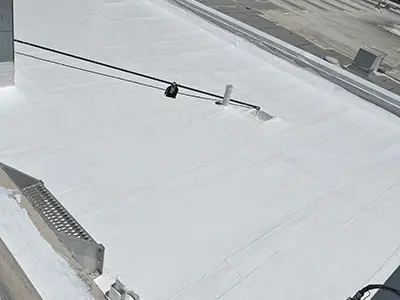 A silicone roof restoration is composed of an adaptable self-flashing silicone material well-suited for commercial roof revitalization. Once the existing roof is prepared, a silicone coating is sprayed/rolled on. The liquid seals all imperfections and adds a waterproof layer on your commercial roof. If you are looking for another option to consider, be sure to check out our page on acrylic roof coatings.